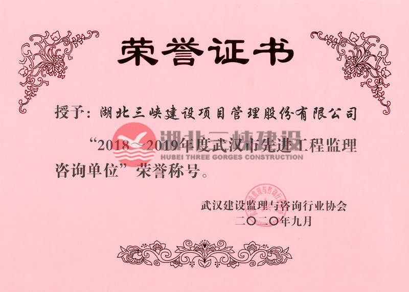 “2018~2019年度武汉市先进工程监理咨询单位”荣誉称号