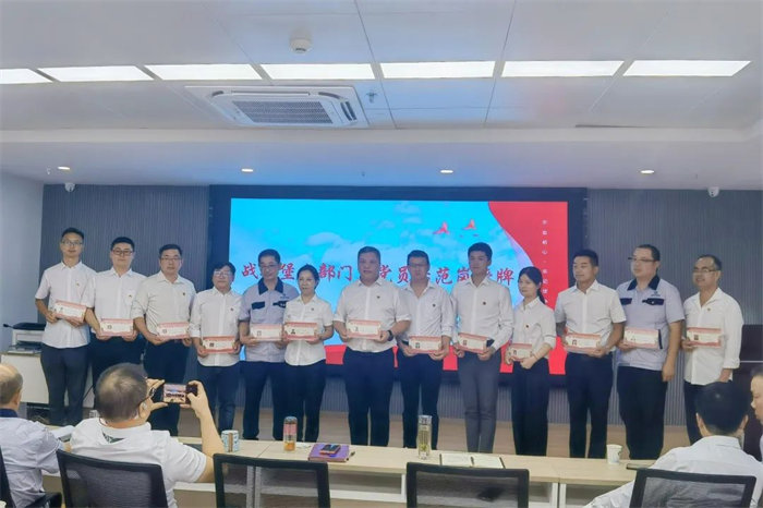 会上对公司优秀党员文瑞、肖王锋进行了表彰。优秀党员及入党积极分子代表谢忠安、肖王锋和张伟三位同志进行了“初心”分享。宣布了常态化开展“亮身份、践承诺、争先锋”主题活动方案,并为全体党员颁发了“先锋模范作用示范岗”标牌,给党员部门负责人颁发了“战斗堡垒作用示范部门”标牌。