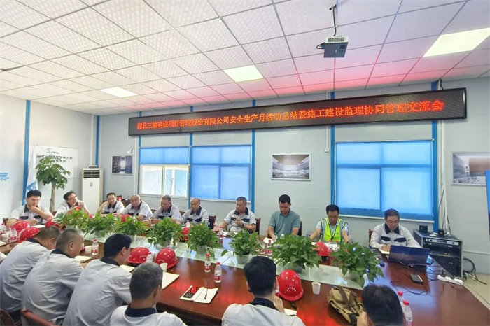 7月20日上午,完美体育网址2024年度“安全生产月”活动总结暨施工建设监理协同管理交流活动,在我公司监理的宜昌市公共活动中心项目部顺利召开。宜昌市城市建设投资开发有限公司项目负责人郭泽云、中建三局集团公司项目经理周大游、我公司董事长盛斌、副总经理秦晋江、白全、技术负责人谢忠安、监理业务总工金爱华及相关部门负责人、公司所属各项目监理部总监等共计30余人参加交流活动。