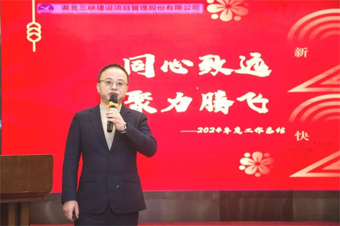 新年致辞 董事长盛斌作新年致辞。他深情回忆了2024年公司各部门为追求技术服务的精准和公正、为找寻如愿签约的希望和喜悦、为彰显保障链的完备和时效,立足工作一线坚守初心、团结奋进、勇毅担当的感人场景。他说,每一次目光的汇聚都映衬着三峡建设人拼搏的身影,每一项目标的达成都凝聚着三峡建设人智慧的结晶,每一点自我超越都展现着三峡建设人价值的光芒。展望2025,他强调:面对纷繁复杂的国际国内形势,面对新一轮科技革命和产业变革,面对全体员工新期待,我们在坚持既有价值体系的同时,要以习近平总书记“发展新质生产力是推动高质量发展的内在要求和重要着力点”这一科学论断为指针,自我革新、自我赋能,以创新管理体系、创新管理工具、创新服务模式为要务,积极融入高质量发展的大潮中,不断推动全要素生产率提升,更好满足全体员工对美好生活的向往。他代表公司董事会向在过去一年当中,为公司转型发展付出辛勤汗水和聪明才智的员工及家属们,以及所有合作伙伴表示了诚挚感谢,祝愿公司每一位同事及家人,新春愉快、幸福安康、所愿皆成!